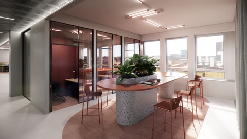 Die offenen Bereiche sind nicht nur Arbeitsflächen, sondern auch Treffpunkte. Sie laden zu spontanen Gesprächen, Brainstormings oder entspannten Pausen ein – ein echtes Plus für die Unternehmenskultur.